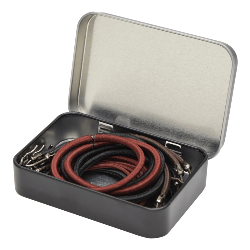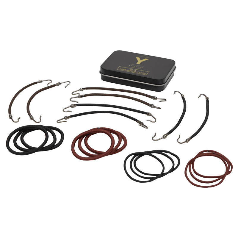 Whether you are creating a brilliant up do, a chic chignon or a fancy twist, the best hair styles start with a secure, elastic band. This essential kit includes assorted hair elastics in shimmery black, brown and deep auburn; ideal for bold braids, sleek pony tails, smooth buns, unique up dos and various styling techniques. Nylon covered elastics hold both thick and fine hair without crimping or damaging the hair. Includes 8 strong hair bungees that are specifically designed to firmly hold thick or curly hair without pulling or tugging. These distinctive tools will help you to create innovative hairstyles and the latest chic and elegant looks.